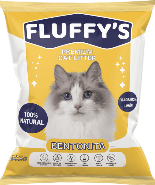 Fluffy's Arena Premium para Gatos de 20kg - Fragancia Limón, Natural y Biodegradable